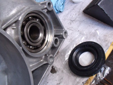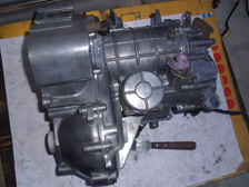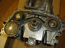 (7月24日)ガレージや部屋が散らかっているので、今回予定していたエンジンの仕様変更は諦めて、組み立てを始めました。クランクを組んでバランサーやチェーンまで組み立てました。