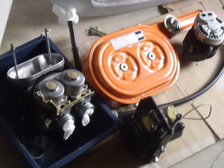 (5月16日)エンジン分解。オイルフィルターにはゴミもほとんどなく一安心。バラバラにして洗浄剤で洗いました。