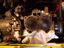 (5月22日)エンジンブロックを磨いたカスやガスケットカスを取り除く為に、再び洗浄剤にて洗いました。これで組み立て作業に入れます〜
