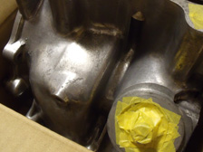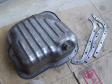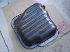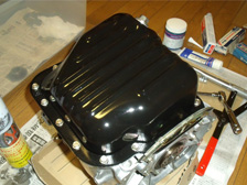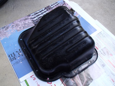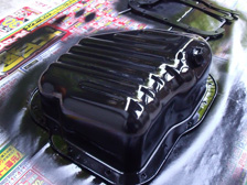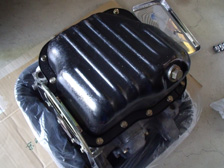 (5月23日)オイルパン。6年半前のエンジン作成時は、ササッと黒のラッカー塗装で済ませていましたが、そこら中を磨いていたらオイルパンの錆や汚い塗装が気になってきたので、塗装を剥離しました。今度は面倒がらずにウレタンで黒を塗ろうと思います。