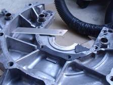 (5月21日)磨き上げた部品達を最終洗浄する前に、古いガスケットをちまちまと除去しました。