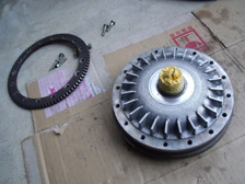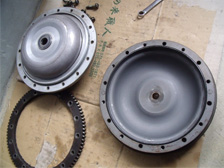 (5月26日)オートマチックのトルコンです。所持しているのは、「現在車載ATのトルコン」と「今回積むATのトルコン」の2個なのですが、僕が分解する勇気が無いのを察して分解清掃練習用のドナートルコンを仲間から頂いちゃいました〜m(__)m。しかも問題なく使えるトルコンです。1枚目写真の左は今回積もうとしてるトルコン、1枚目写真の右は練習用トルコン。練習用トルコンを分解して構造などを勉強。外周にスラッジが少し溜まってたくらいで綺麗な状態でした(写真2、写真3)。構造が判ったので今回積もうとしてるトルコンの清掃を始めました。まずは外観から〜(写真4)。続いて内部をと思ったのですが、簡単にトルコンがパカッと開いてくれなかったので今日はココまで・・・。