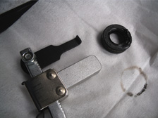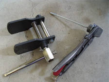 (1月28日)今日は、サーモケースを木の板でサンドし万力に固定しブリーダーボルトを緩めてみました・・・・・・・・・・・・が!!。ポキっとサーモケースが割れてしまいました(T_T)。わー困ったなぁ〜