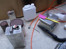 (7月30日)バッテリーやキャブやエアクリを装着。続いてエキパイのバンテージがエキパイを外す時にボロボロになったので新しく巻き直しました。マフラーの継ぎ目に使う液体ガスケット、新しいモノを買ってみました。漏れはどうかな〜。今日はマフラーを車体に付けるまでで終了。接合部がうまく刺さらなかった・・・エンジンの位置が以前と違うのかも。