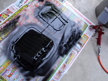 (5月28日)オイルパンの下地塗装開始。オイルパンを押さえるステーが有った事を忘れていたので急いで引っ張り出してきて塗装剥離と錆落としを行い、一緒にエスコを塗装しました。久々のガン塗装なので段取りが悪かった〜(^_^;)。次はウレタンブラックです!