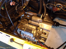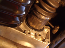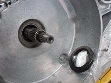 (7月28日)エンジンを載せる前に、面倒なATを積み替える作業があるのです。足回りを分解しドライブシャフトを逃がしたりしながら今までのATを降ろし、そして春に磨き上げていたATを搭載です。そのまえにオイルシールを交換です。ふぅ〜。腰を痛めずに作業を終える事が出来ました。今回、ミッションマウントがヘタってるのを発見。何か考えなくては・・・