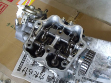 (7月25日)ピストンを組み込んだり、オイルポンプを組んでサイドカバーも装着。そしてオイルパンも装着で、腰下は完成しました。