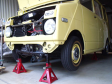 (9月8日)気がつけば、車検が迫ってきました。少し寝かす予定でしたがステップバンは使い勝手が良いので通す事にします。車検前の整備開始です!。8/5の作業時にミッションマウントステーを装着するM10−1.25のボルトがなめてました。100km程のテスト走行では緩んだり抜けたりはしていませんでしたが、なんか気になるのでリコイルを打ち込んで修復しておきました。センターマフラー上部のトンネルのシャーシブラックが剥がれていた部分が有ったので塗装。ヘッドボルトを増し締めしました。7/29に何キロで締めたか記憶が・・・。とりあえず90度緩めて4.2kgで締め込みました。元位置よりも45度位締まった感じです。ブレーキも簡易点検。ブレーキオイルも綺麗で減ってませんでした。最大積載量ステッカーを貼ったり、ヘッドレストを装着したりホイルキャップを外したり・・・・。数年前から、そのままで車検に通せるスタイルにしてるので楽です〜