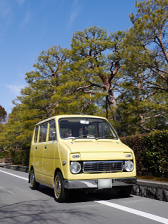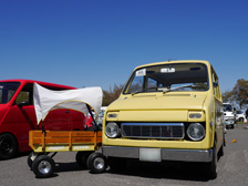 (4月15日)エコパで開催されるナカヨシホットオールドミートに参加の為に前日入りしました。宿泊先のガレージを見るとステップバンは小さいですね〜