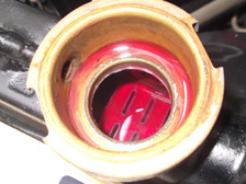 (5月8日)先日の福井のイベントから帰ってくると、ラジエター液が吹きこぼれていました。ラジエター内の液量は少なくなっていてリザーブタンクは溢れるほどになるのです。オイルフィラーキャップには汚れも無く綺麗なので、前回と同じく燃焼室から水路への一方通行のガスケット抜けの様な症状です。少しお掃除して終了。