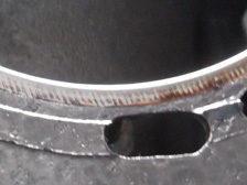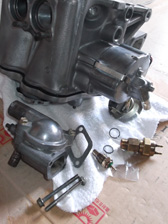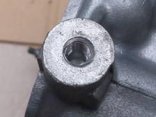 (9月5日)昨日の作業時にUボルトの固定ナットが1個無くて困っていました。ネジ箱のナットを当てがってもハマらなかったのです。切断したUボルトの破片を利用して径とピッチを測定すると・・・・・普通のM10(笑)。ネジ箱からM10ナットを出してもう一回すると簡単にハマりました(^^;)。無事に板バネが本固定されました〜。先日のオイルブロック、センサー取り付け部の内側やブロックを固定するボルトなどのバリが酷いんです。エンジン内にバリの破片が回ると怖いので綺麗に研磨する事にします。