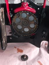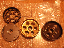 (8月9日)カムプーリー。今まで装着していた可変カムプーリーをお掃除しました。錆び固着防止の為にアルマイト加工してから装着しようと思います。とりあえずノーマルプーリーを引っ張り出してきました。