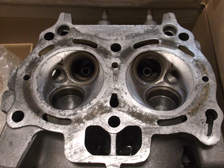 (5月13日)エンジンヘッドを降ろしました。ガスケットを見るとコレといって抜けた箇所は有りません。ガスケットのリング部分の裏表を見ると、シリンダー側は面研された綺麗な面が当たってますが、ヘッド側は360cc時代に水路だった荒れた面に接している様な模様が写ってました。これくらいしか疑うところが有りません・・・。ヘッドのオーバーホールは今まで行ってなかったのでこれを機にヘッドオーバーホールを行おうと思います。