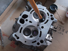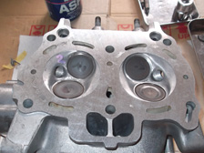 (8月2日)超速でヘッド加工が仕上がってきました。早速バルブの摺り合わせ作業です。排気側はシートカットを行って貰ってるので、綺麗な当たり面が出来ていました。吸気側は少し擦ってやるとイイ感じになりました。ガイドの入れ替えでヘッドが熱せられてそうなので砂抜き盲栓の密着が心配になったので一度外して液ガスを塗り直して再装着しました。