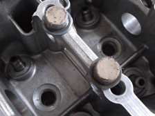 (8月30日)板バネの片面をPORで塗装しました。乾燥待ちなのでヘッドの作業。バルブクリアランスの確認と調整。ほとんど狂っていませんでした。ヘッドボルトは増し締め。各所5分〜10分くらいは締まったかな。