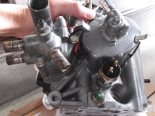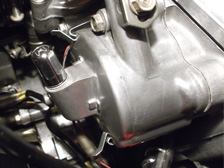 (6月30日)ヘッドのクーラーコンプレッサーブラケットを固定していたボルトが1本折れて残ってたので折れネジを取り出しました。カムのプーリーを固定していたボルトの折れネジも取りたかったのですがなかなか取れず・・・。