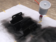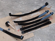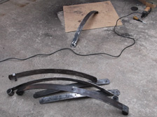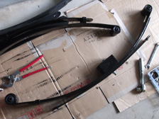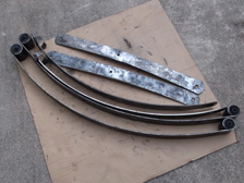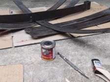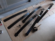 (8月29日)数年前に伸ばし加工したリアリーフスプリングがリアバンパーにヒットしてたのですが、とうとうリアバンパーが破損してしまいました。去年に準備していた純正リーフスプリングを引っ張り出してきてレストア開始です。前回と同じ様に塗装を綺麗に剥離しました。塗料もPORを準備しました。