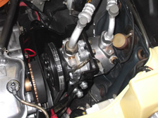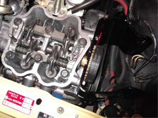(8月23日)前回のエンジン始動時に点火タイミングがかなり早かったのが気になっていました。バキュームアドバンサーを最大に下げてもFマークよりも早い・・・・。面研でここまで変化するのか?!と。色々と調べるとタイベルを1山掛け間違えてる感じです(^_^;)。ベルトを正しく掛けてエンジンを始動し点火時期を調整すると、以前と同じ様にバキュームアドバンサーの調整範囲の中心でFマークにバッチリ合わせる事が出来ました(^^)v
