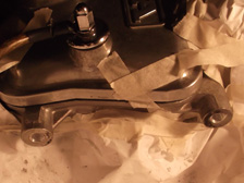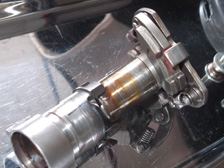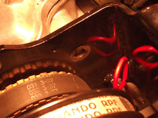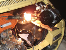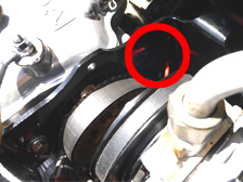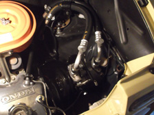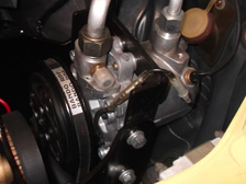 (8月4日)冷媒路が先日まで大気開放だったので水分混入等のトラブルを避ける為に早速、真空引きして冷媒充填。動作不良を疑ってた進角装置はグリス劣化とか錆が原因でした。長らくノーメンテだった部分ですから軽く磨いて、今度はオイル塗布(^^)たぶんあまり乗らないから錆びるんだ(笑)作業後は、アクセルをどうあおってもちゃんとFマークに戻ってくるお利口さんになりました。エアクリの固定部分のゴムブッシュを交換しようと作業をしているとゴムを落としてしまいました。その先で発見したモノは・・・・。インマニのキャブ固定バンドのネジが無くなってる。前回作業時に閉め忘れしていたのか緩すぎたのか?!。二次エアーを吸うとダメですから治さなくては。