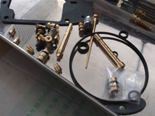 (7月24日)サブロク仲間のZ乗りさんがキャブのオーバーホールをするとの事で遊びに来られました。今回使用するのはキースターさんから発売されたオーバーホールキット。加速ポンプ以外が全部セットになっています。ジェットやニードルやフロートバルブまでもが!!凄い事です。故LSの広田先生や皆さんの知ってるあの方とか(笑)が開発のサポートお手伝いをされていました。