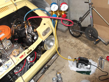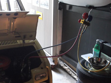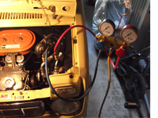 (8月30日)またまたクーラー整備。10日も経ってないのにコンプレッサーの再交換。外観が綺麗なリビルトコンプレッサーに交換しました。プーリー裏の汚れやネジ錆などがボンネットオープン時に気になったので(^^;)ほんと自己満の為だけです(笑)バランス圧の計算(気温32度÷4.5=7.1bar)7.0bar入れときました。冷たい風が出ます〜・・・が、秋くらいまで乗る予定無し(笑)