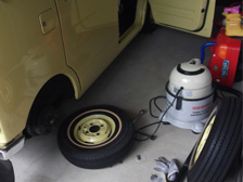 (8月15日)車検前整備。空気をパンパンに入れて少しでも車高稼ぎ。でも、8cm?!7.5cm?! 前回よりもバネ変更で1cm下がってるからなぁ(^^;)ウォッシャーも出なかったので途中のワンウェイバルブを少しお掃除して開通させました。