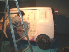 2006年夏 「エリア京」メンバーは11月のFesta360を目指して 4台のステップバンが作業を開始しました。 お手伝いにおじゃました時の模様を撮影してましたので紹介します〜 1台目 O岸Jr君の郵政ステップのお化粧直し。 2台目 ハタボーさんの事業ナンバーのステップ作成&車検取得。 3台目 I川君のステップ車検取得。 4台目 アブドン君のステップ車検取得。 以上の4台の作業です。 日時の流れでまとめたので、どの車の作業か見にくいかもしれませんが 見てください〜(^o^)/