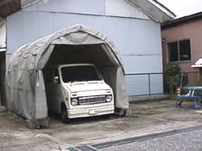 この中にすっぽりと紙のステップ号は入っております!横にはレジャーテーブルがあり、ジュースやお弁当さえあればピクニック気分で作業が出来そうです。この日は、あいにくの大雨でした(T_T)