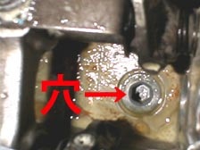 掃除して覗くと・・・・向かって右側が穴あきでした!!。メクラ蓋を新品に交換して元の状態に組み直し作業完了!・・・・・・・・・・・・・・・が、しかしエンジンかかりません(^ ^;)。タイベルのかける位置があっていない様な症状です。何度確認しても合ってるので原因不明。日が暮れたので後日へ延期。原因がわからないモヤモヤ状態で解散となりました。
