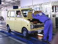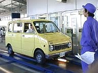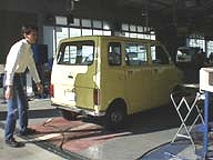 検査官によるチェックです。いけずそうに若検査員が・・・・(笑)。ウインカー・ハザード・ワイパーの動作チェックがありました。