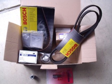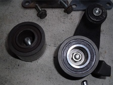 最近、足車ボルボのエンジンルームからベルトが滑るような音がする事が有るので それぞれのベルト類の最終交換履歴を調べてみると・・・ ●タイミングベルト 42000km時交換 ●ドライブベルト 85000km時交換 でした。現在の走行距離は143500km。 ボルボのタイベルは6万キロ毎交換ぐらいなので、10万キロ以上使っている危険状態MAXでした。 キュルキュル鳴いていたドライブベルトも6万キロ近く使っているので交換時期でしょう〜 この辺りを完璧に部品交換して安心して乗りたいので全部リフレッシュする事にしました。 ディーラーに依頼すると部品代や工賃で10万円近いコースだったので 自分でする事にしました!(お金無いですから・・・(笑)) 部品は純正ではなく安価に社外品で揃えました。 社外品ですとASSY交換ではなく ベアリング部分のみやプーリー部分のみの交換が出来る部分もあるので更に安くなりました。 ・タイミングベルト ・タイミングベルトアイドラープーリー ・タイミングベルトテンショナープーリーのプーリーベアリング ・ドライブベルトプーリー ・ドライブベルトテンショナー用プーリー ・ドライブベルト 部品代は以上で3万円ちょっとでした。 純正だとASSY交換部分もあるので部品代7万前後ではないでしょうか。